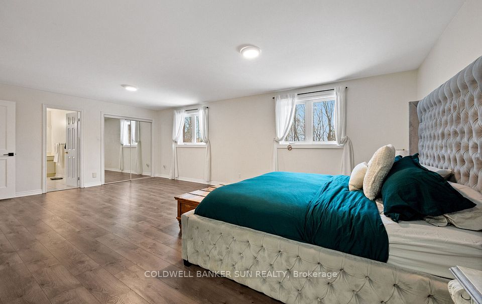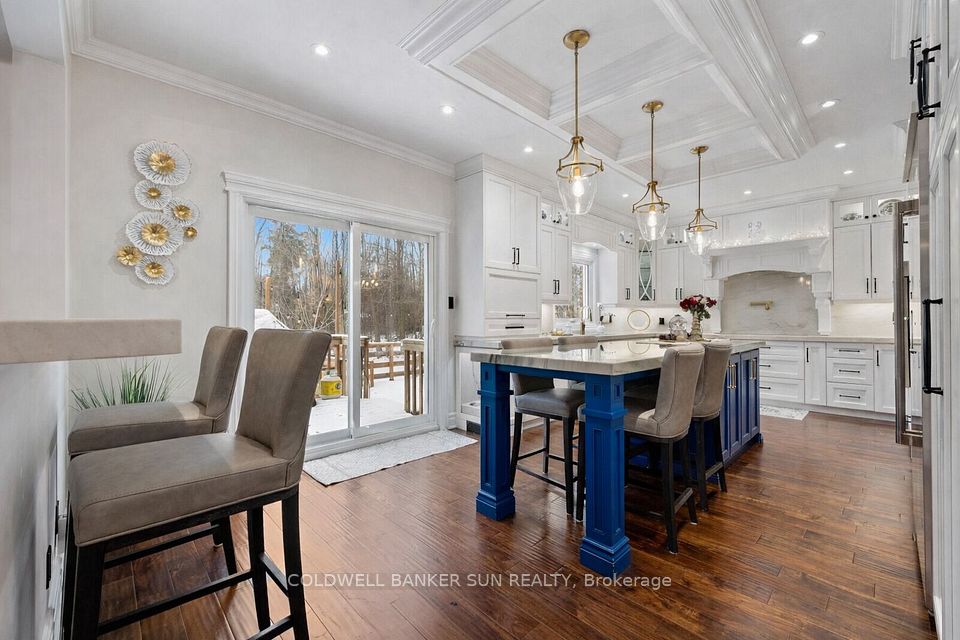 Welcome home to 34 Previn Court! This unique residence is the perfect place to embrace new beginnings. Ideal for multigenerational living and set on one of Alliston's most desirable streets, this showstopping home is conveniently tucked away at the end of a quiet cul-de-sac on a nearly half-acre, pie-shaped ravine lot. Cherish rare privacy and the feel of a wooded retreat-while being just minutes from top schools, parks, shopping, dining, and commuter routes. With over $200,000 in renovations and more than 4,000 sq. ft. of finished living area, there's room for the whole family and more. The full walkout basement features a second kitchen, additional bedroom, and bathroom-perfect for in-laws, extended family, or guests. The redesigned exterior delivers fresh, modern curb appeal with new windows and doors, elegant refacing, ambient soffit lighting, and updated garage doors. A 3-car garage plus parking for six ensures comfort and convenience for large families and visitors alike. Inside, refined finishes elevate every room: wainscoting, coffered ceilings, crown molding, new main-floor flooring, pot lights, and a beautifully refinished staircase. The one-of-a-kind designer like, gourmet kitchen, shines with rare Brazilian quartzite counters and is open to formal living and dining areas designed for easy everyday living and comfortable, effortless entertaining. The main-floor office offers flexibility as a workspace or potential extra bedroom/media area. Making your way upstairs, the spacious floor plan includes the option to add a 5th bedroom allowing for up to 7 bedrooms total. The primary suite is a serene escape featuring a spa-like ensuite, while the backyard offers a peaceful haven with expansive decks overlooking the tranquil ravine. Make 34 Previn Court your new beginning. Homes like this are rarely available-don't miss your chance.