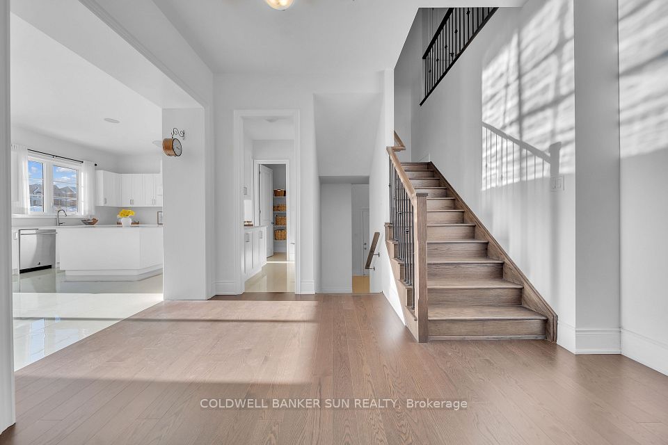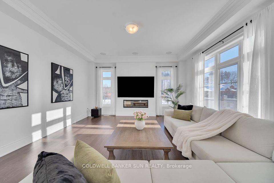 Nestled in the heart of Caledon, this breathtaking corner ravine lot boasts 4015 sq ft of living space with 5 spacious bedrooms with ample closet space and 3.5 bathrooms. This property overlooks pond in the back and is complemented with open concept layout. With 150k worth of upgrades including 10ft smooth ceilings on the main floor with 9ft in the basement and upper level, hardwood flooring throughout, tiles and iron picket railings. The showstopper kitchen has been meticulously crafted with built in JENN AIR appliances and quartz countertop with pantry and a kitchen bar. With double Door Entry and large windows, this home offers an abundance of natural light. The main floor also features a den, family room and a walk-in coat room. **** EXTRAS **** In-built sound system throughout the house, steam shower in the primary washroom, garage door opener and electric car charger.
